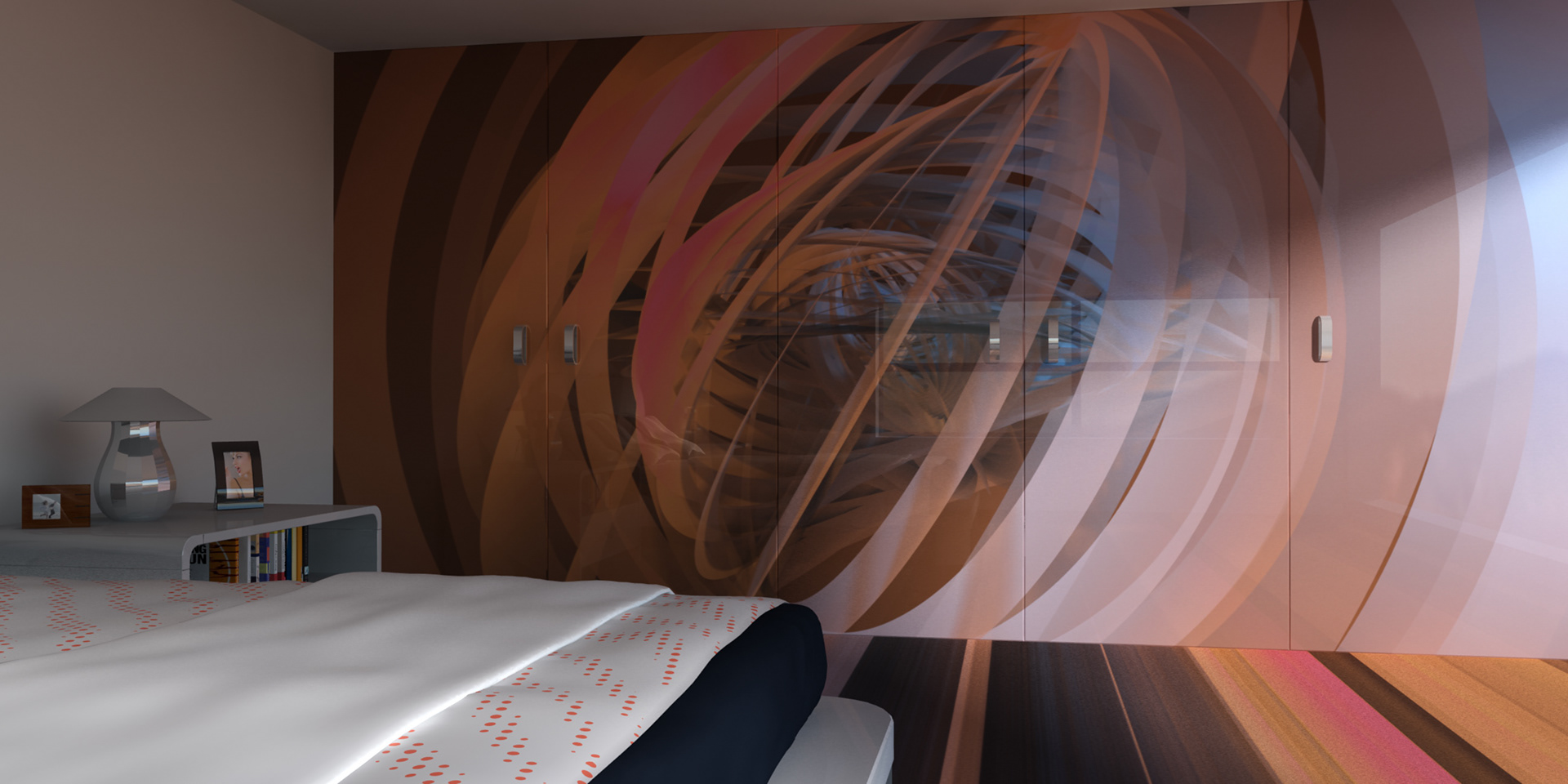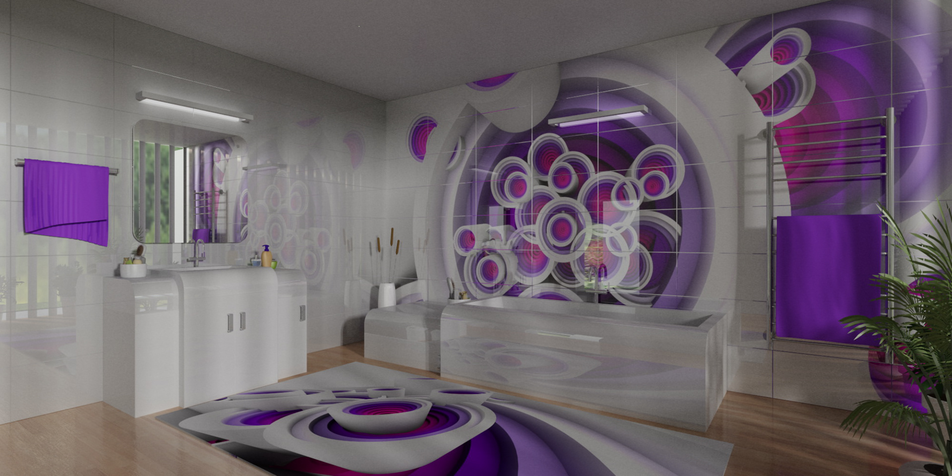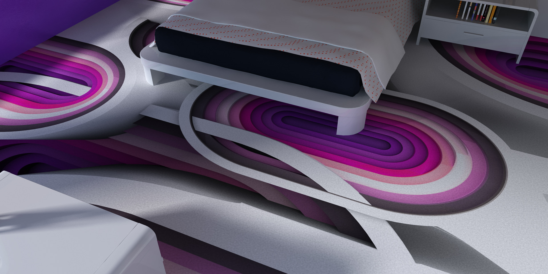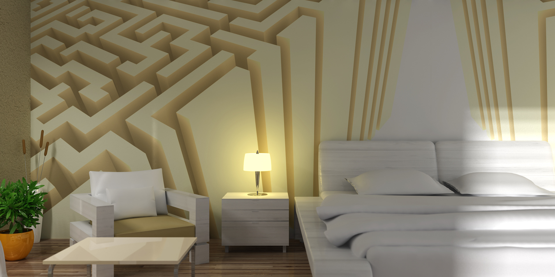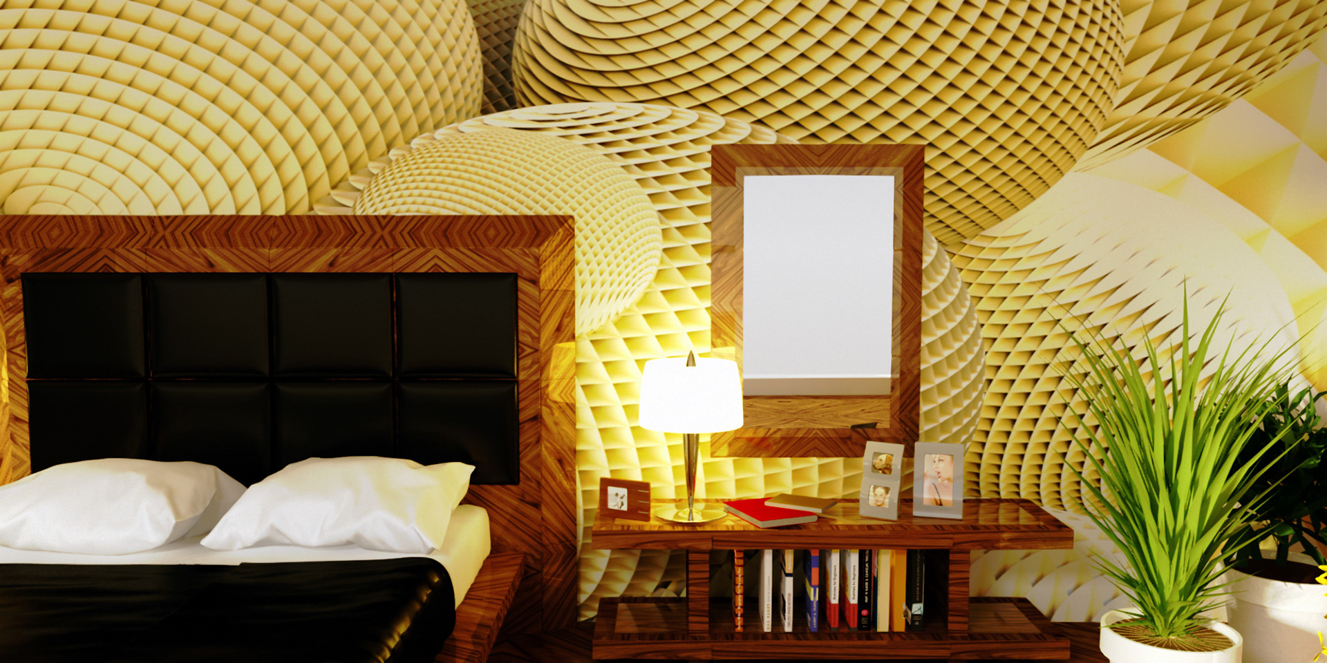 3D renders that are sold in 10 pieces limited editions. Printed in high resolution on wallpaper, canvas, glass, metal, tiling, furniture and carpet.