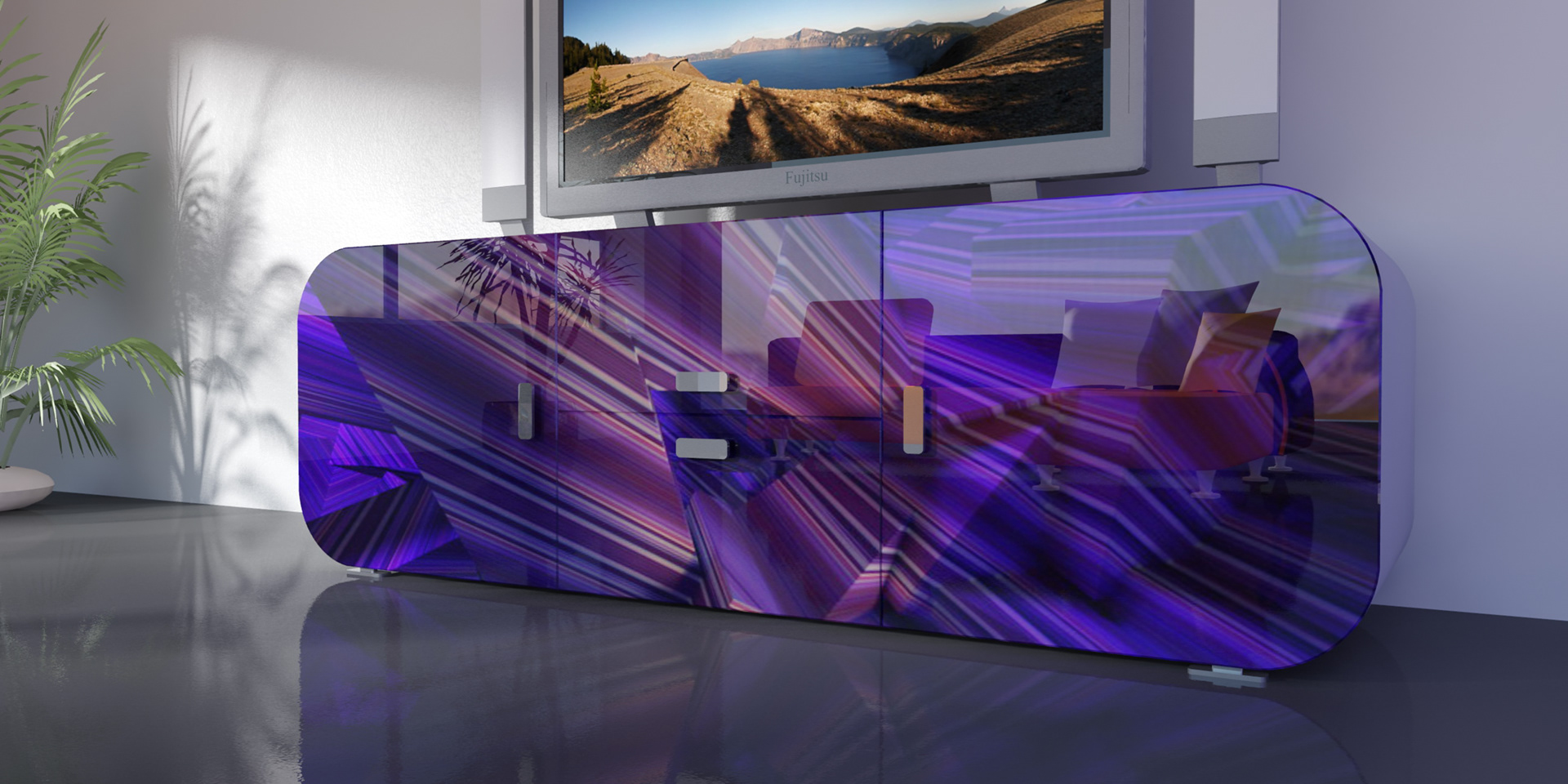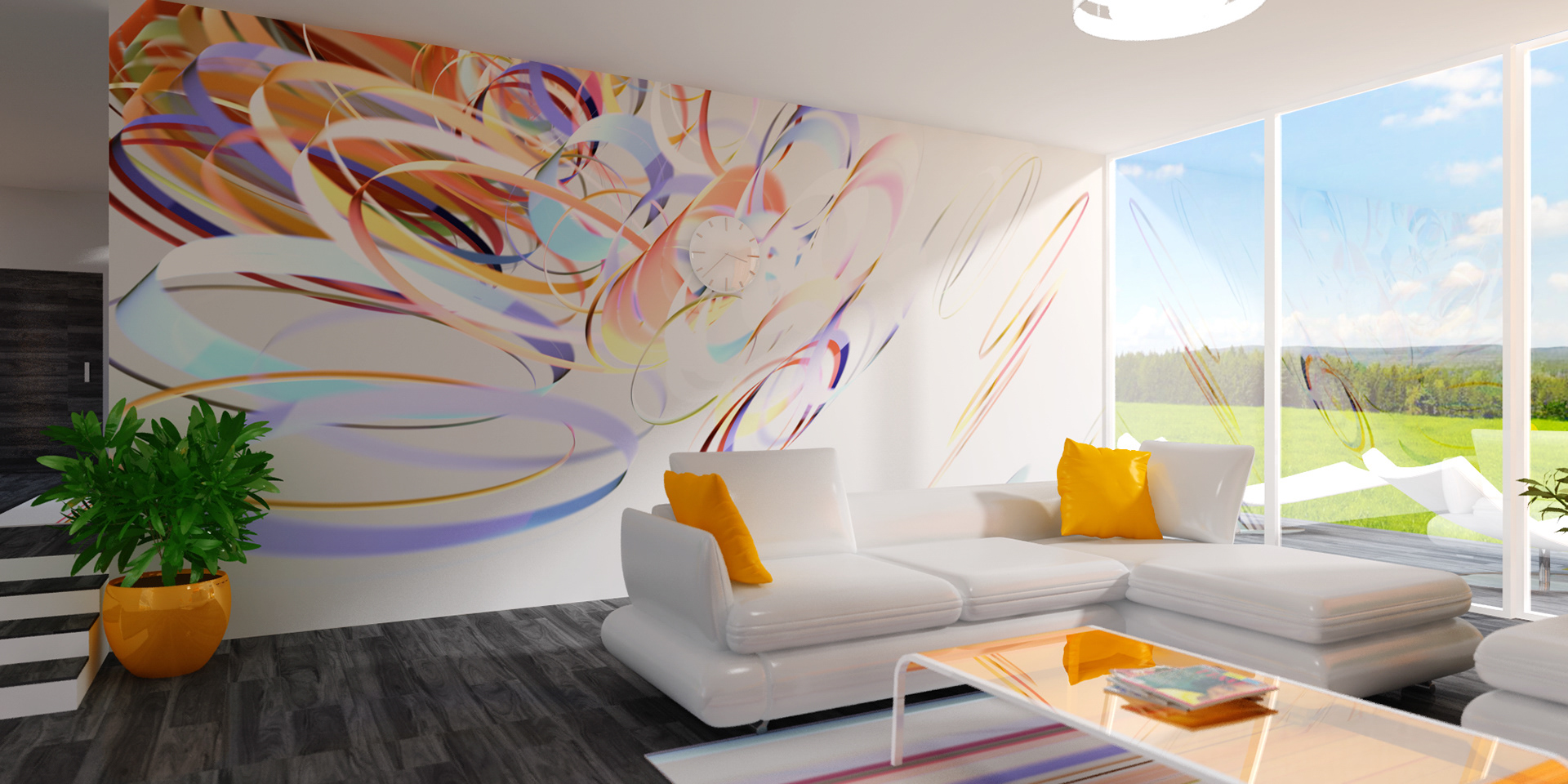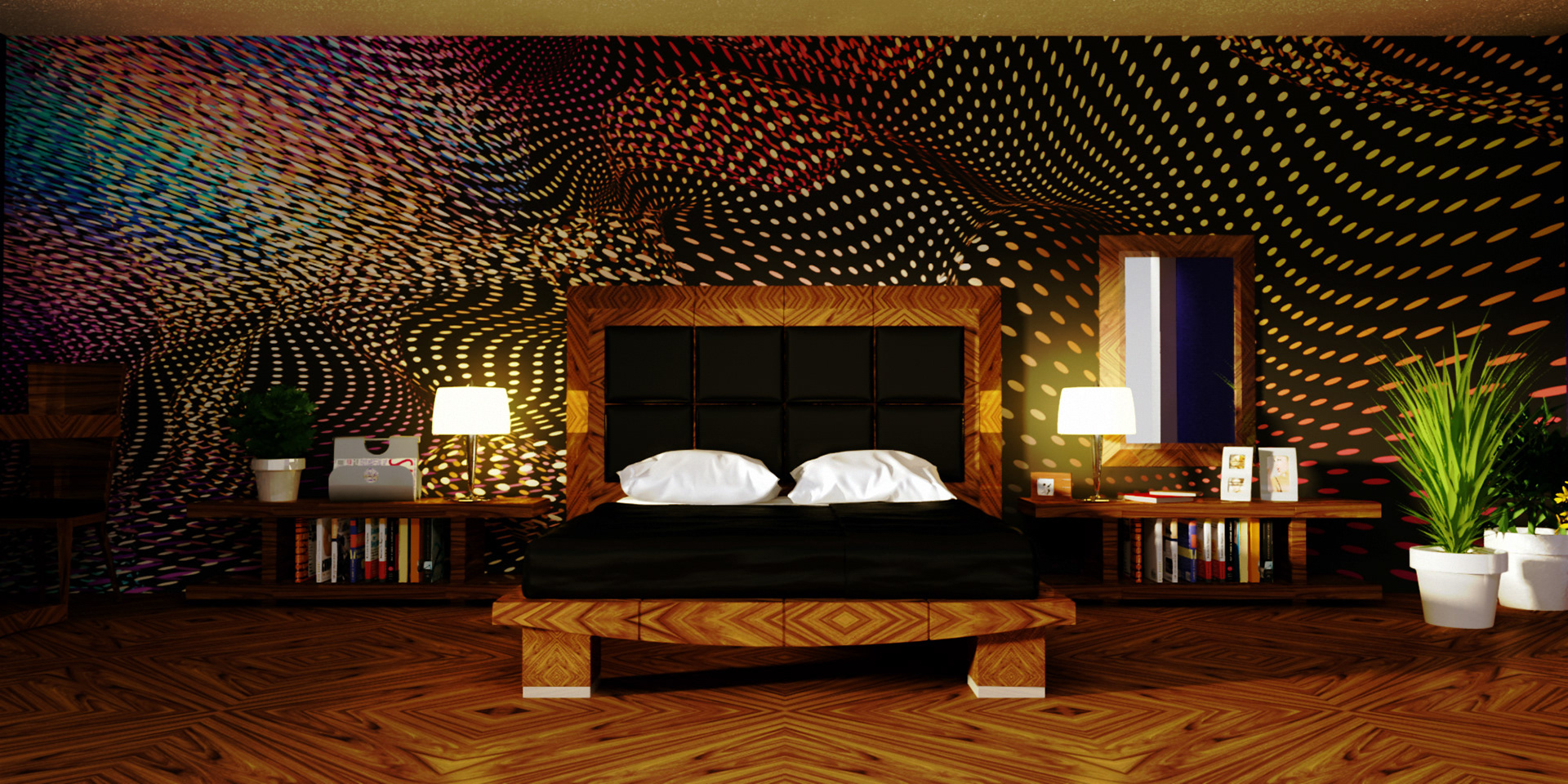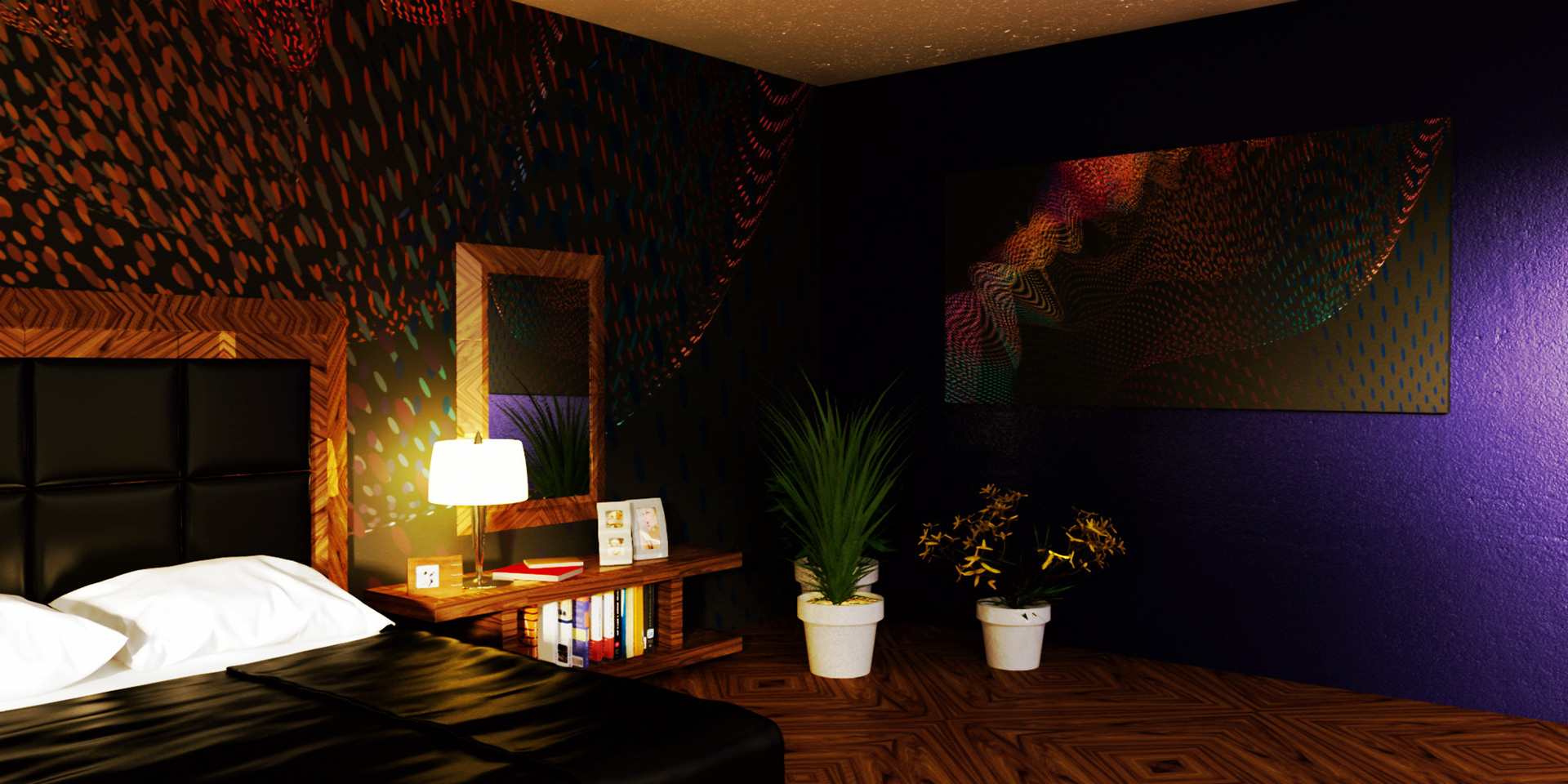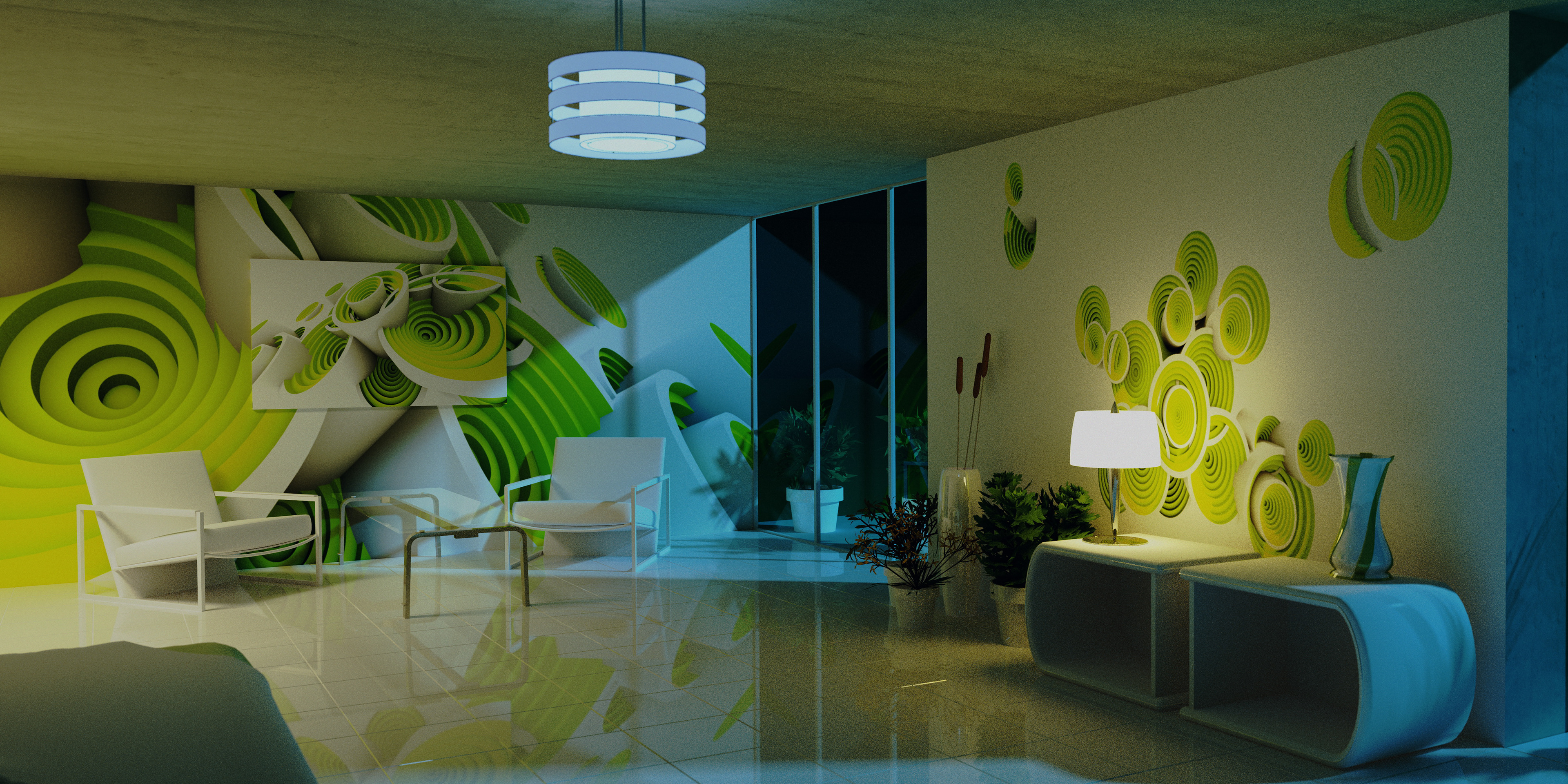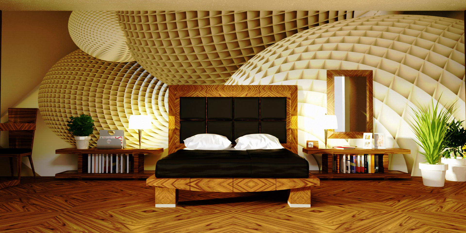 3D renders that are sold in 10 pieces limited editions. Printed in high resolution on wallpaper, canvas, glass, metal, tiling, furniture and carpet.