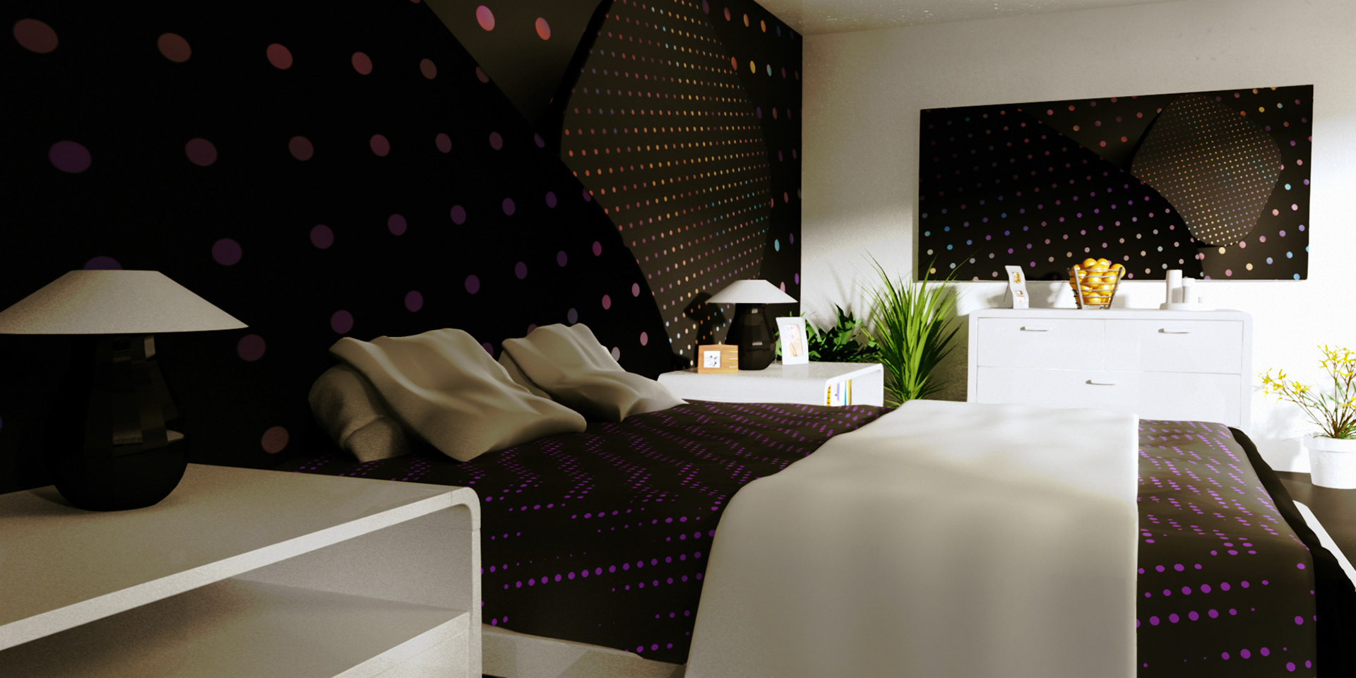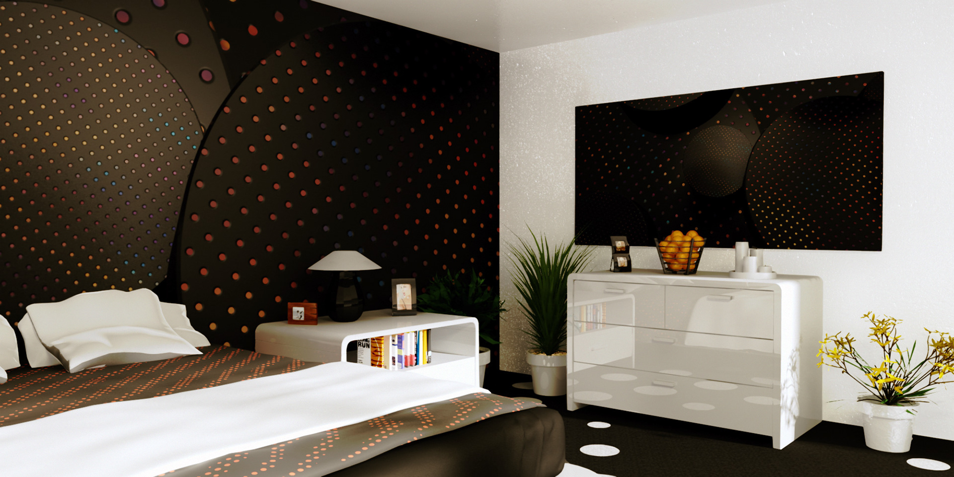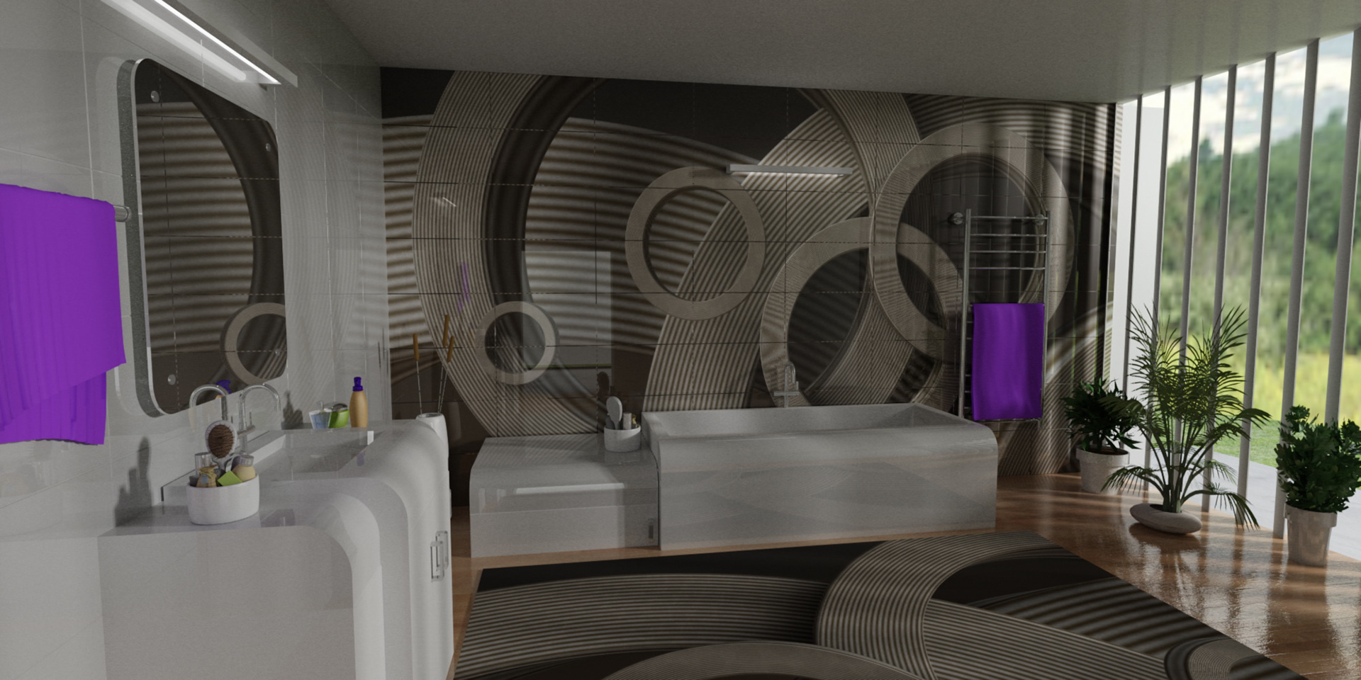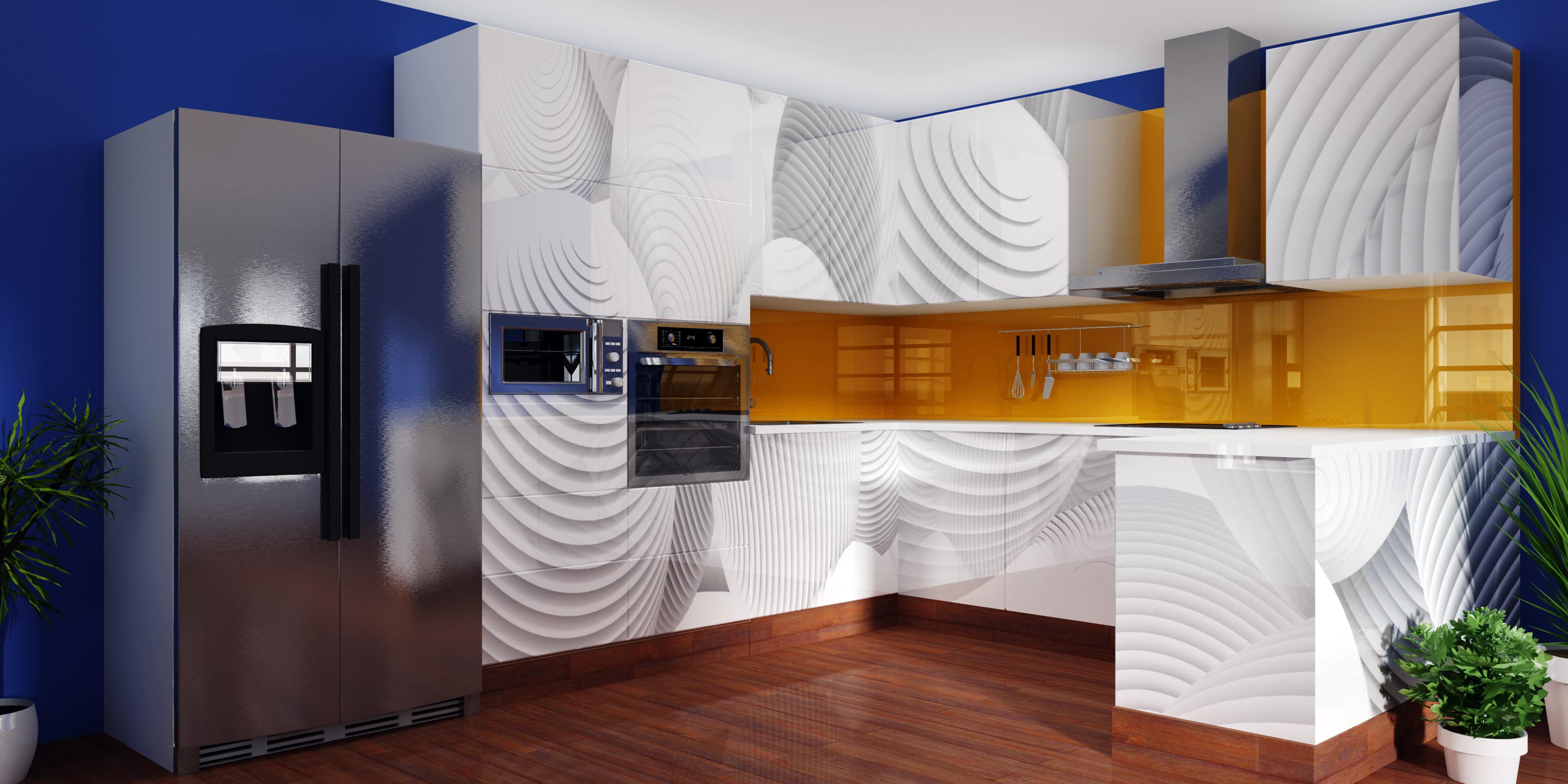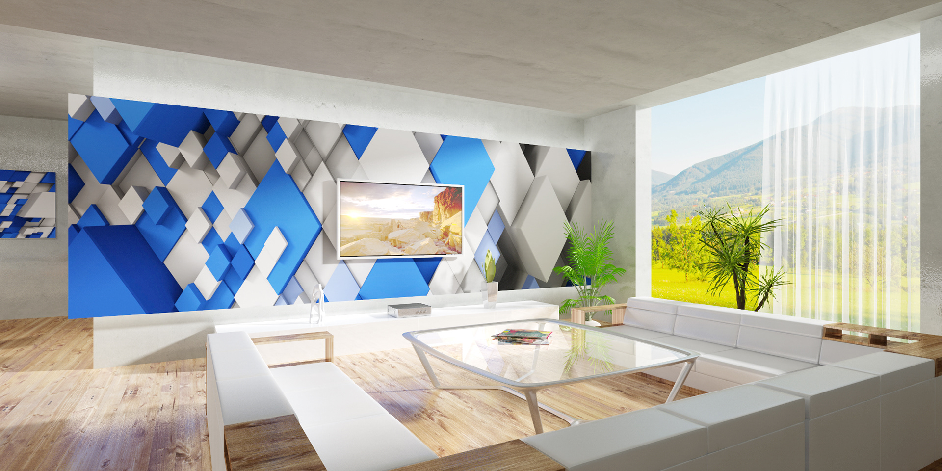 3D renders that are sold in 10 pieces limited editions. Printed in high resolution on wallpaper, canvas, glass, metal, tiling, furniture and carpet.