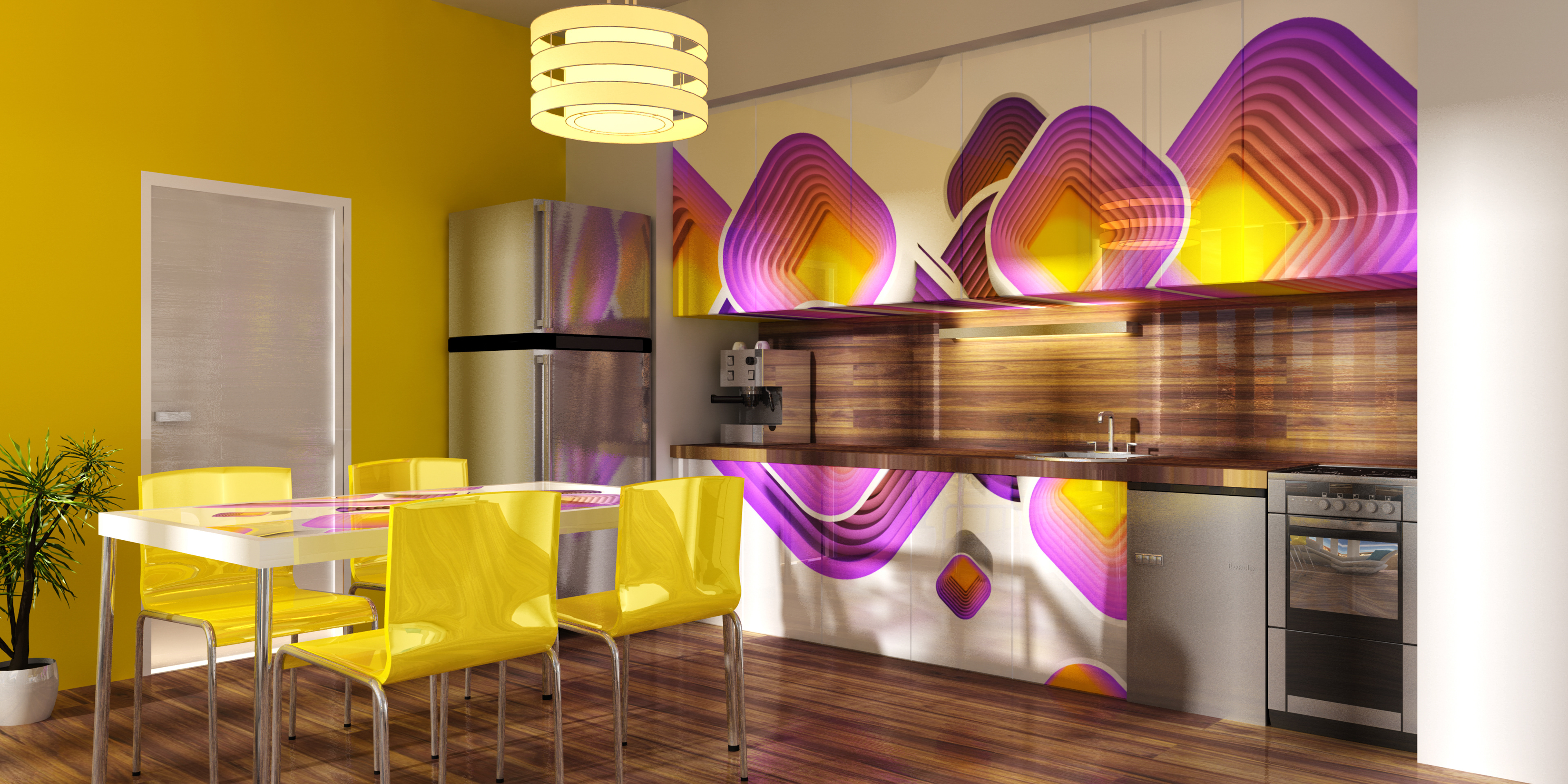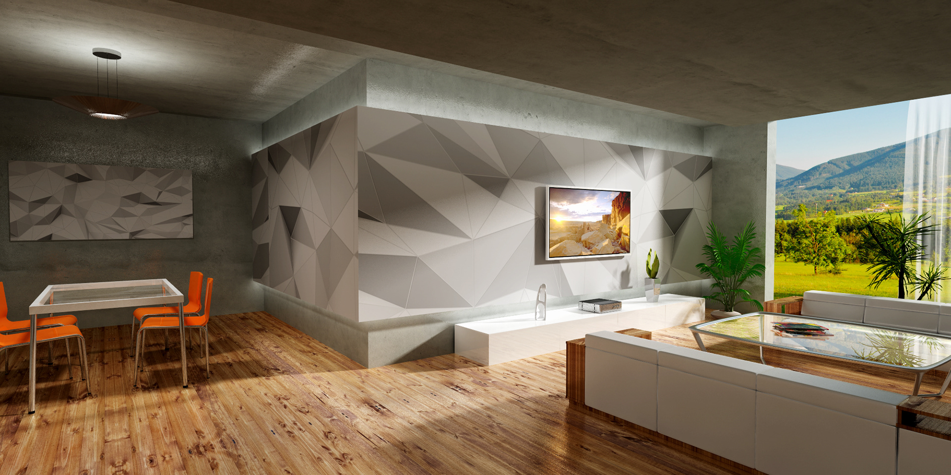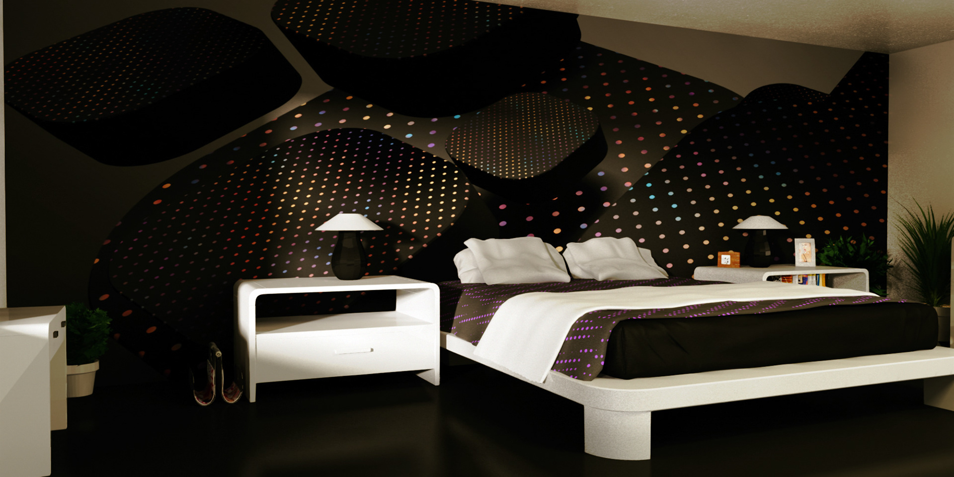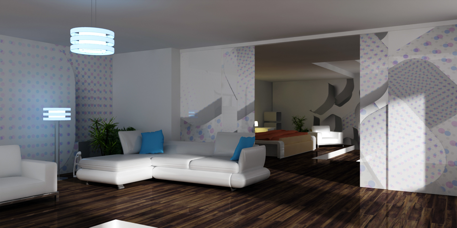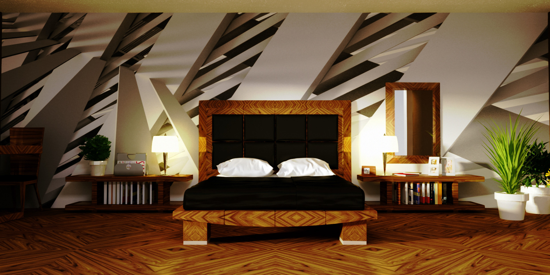 3D renders that are sold in 10 pieces limited editions. Printed in high resolution on wallpaper, canvas, glass, metal, tiling, furniture and carpet.
